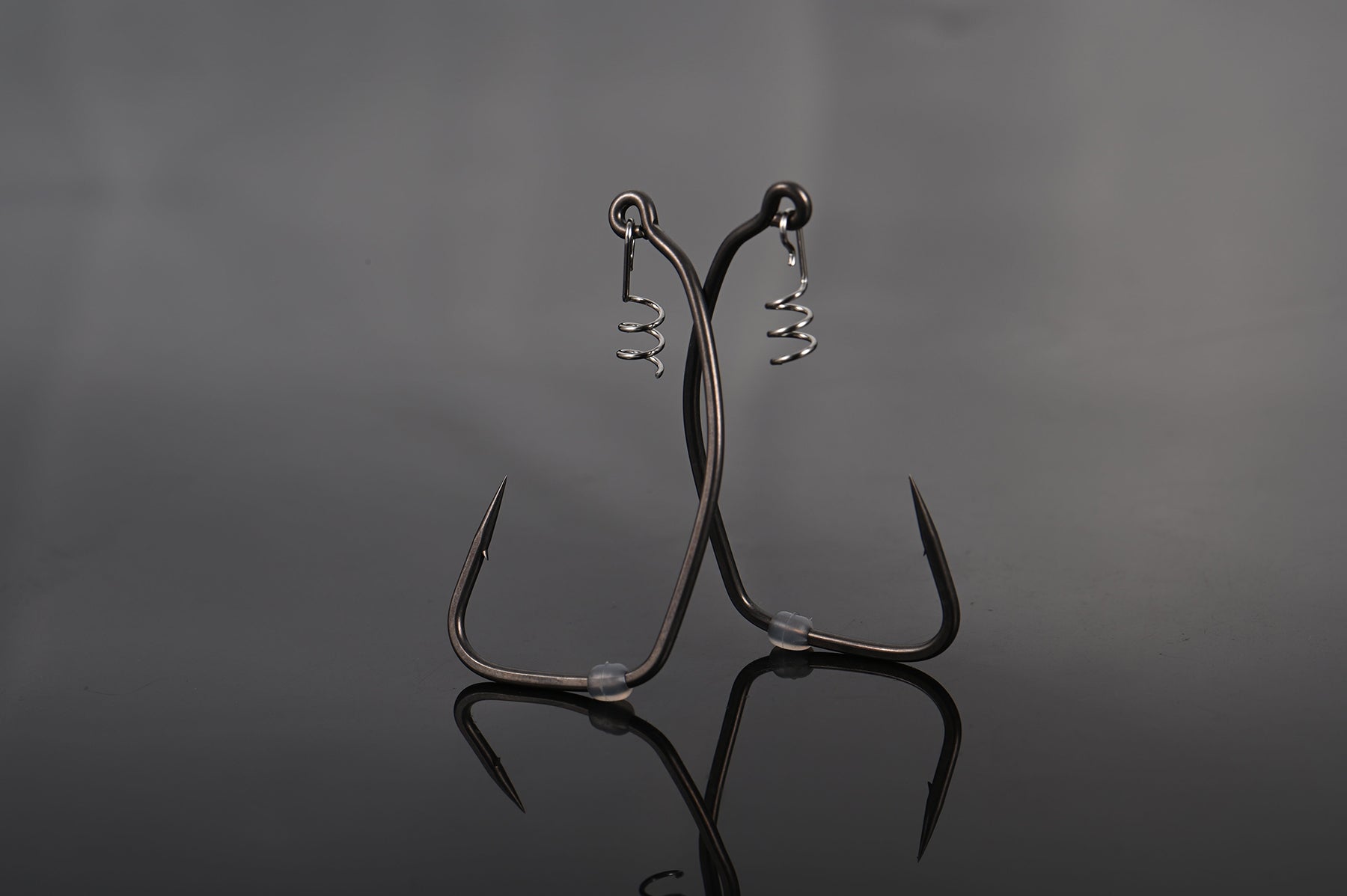 The BKK Titan Rider is designed for weedless-style rigging of large soft plastic baits such as big swimbaits and tubes. More than one year of field tests with different species underlie the construction quality and the versatility of the hook. The hook is equipped with a locking spring that securely holds baits in place and allows anglers to easily add or remove soft baits. An adjustable silicon stopper keeps soft plastics in position during casting whilst allowing for sliding down the hook when fish strike. Furthermore, a deep throat features a much longer hook point section that penetrates farther into the fish's mouth for a more secure hookset. BKK's unique Super Slide coating of the hook enhances penetration capability and reduces friction to the minimum level. The BKK Titan Rider is the best hook for those anglers that do not want to compromise on the hook up rate when weedless fishing with soft plastic lures.