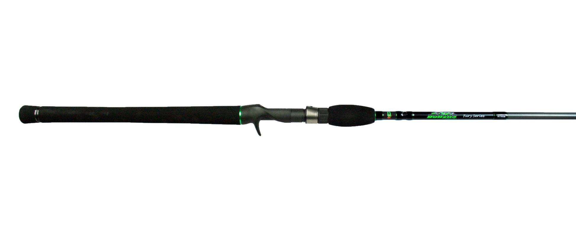 Dobyns Fury Casting Rods are a series of 1-piece bass baitcasting rods that are arguably the best "bang-for-your-buck" when it comes to tournament bass rods. Designed by bass tournament veteran Gary Dobyns, Fury Series rods feature well-balanced, high modulus graphite blanks that provide ample strength and sensitivity. These blanks are adorned with carefully selected high-quality guides attached to the rod with strong yet sensitive Kevlar wrapping.