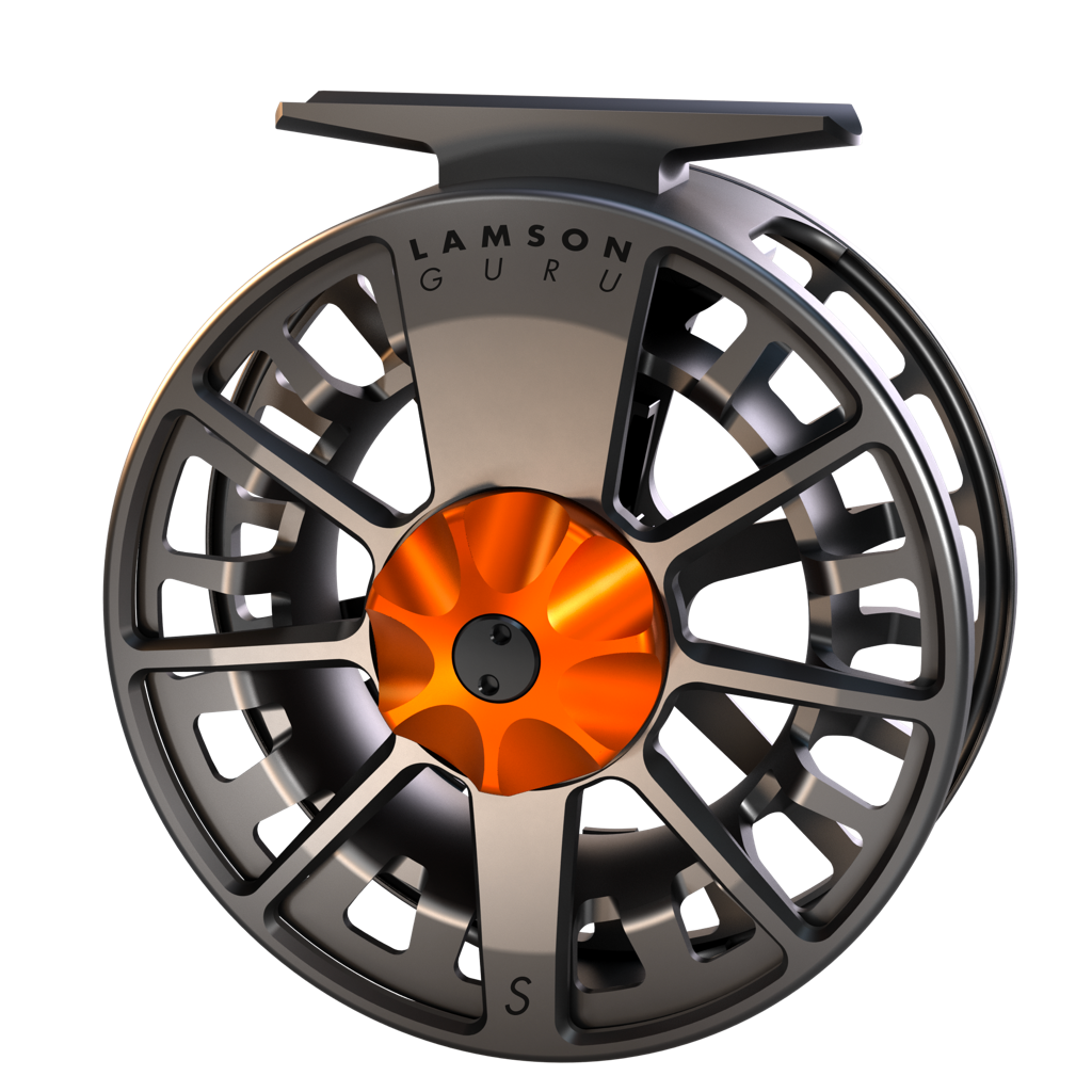 Reach nirvana. The HD in this reel stands for €œHeavy Duty.€ The Guru S HD has both a complete cage design and type II in blaze finish. Guru S HD is a phenomenal, affordable Saltwater and/or Spey reel. Steadfast and stylish, Guru has long set a standard as a rugged, fully USA-machined, and ultra-reliable reel at a mind-blowing price. We€™ve updated Guru€™s spool geometry for enhanced retrieve rates, opened the porting to reduce weight and improve line drying, integrated the counterbalance, and introduced a curved cross section arbor for structural stability. Guru continues to prove that the quest for enlightenment can be anything but boring.