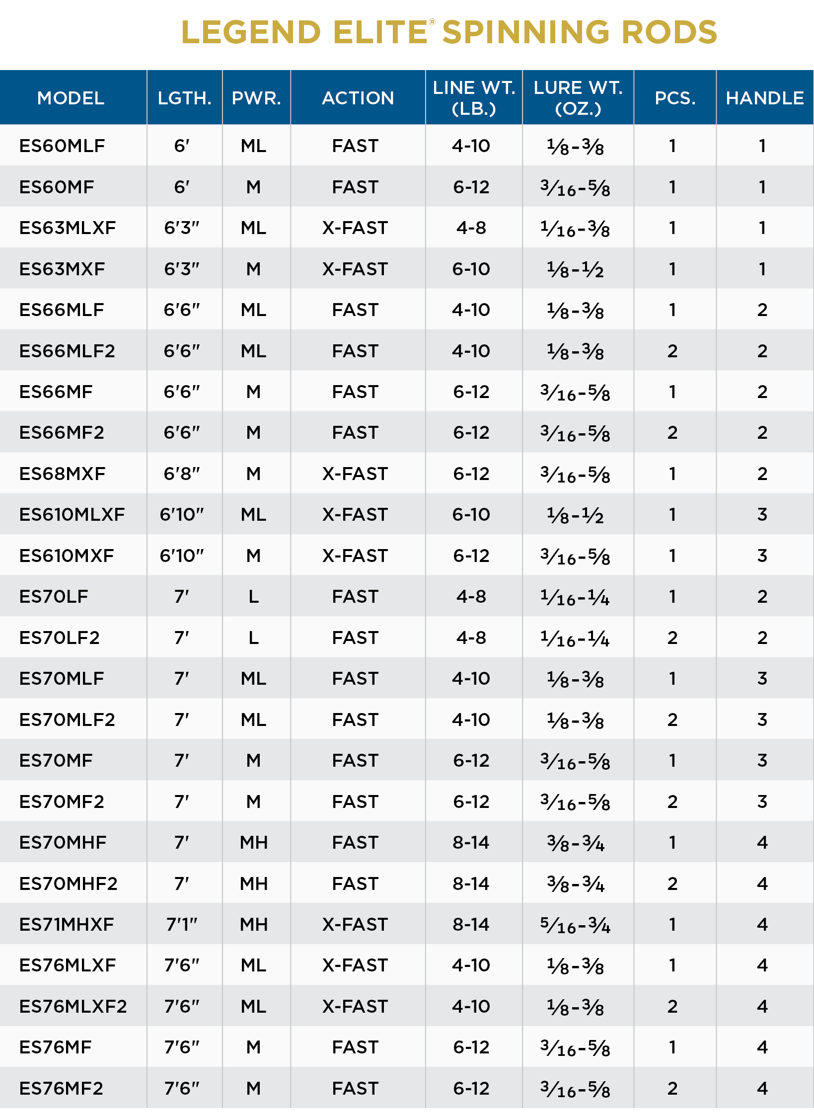 - LEGEND ELITE® SPINNING RODS feature: