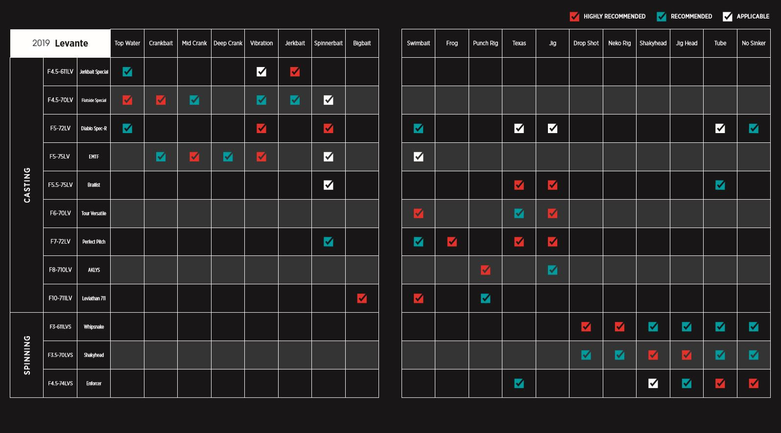 | F4.5-74LVS | Fast | 7'4" | 8-20lb | 1/4-5/8oz | Medium | Enforcer |