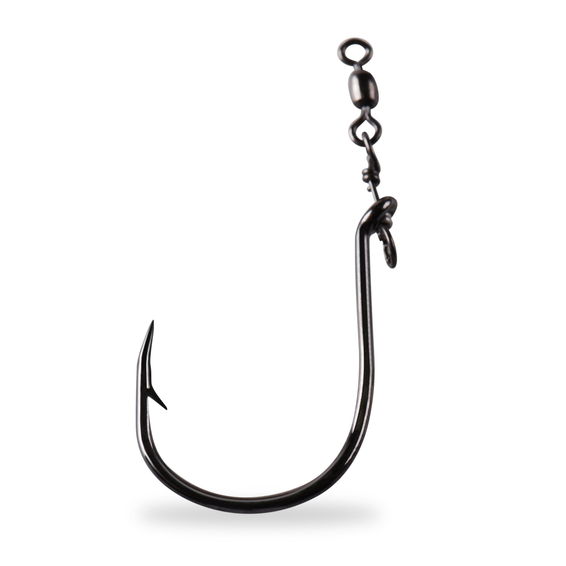 The Mustad No-Twist Drop Shot Hook is a light wire, round bend drop shot hook with a Mini Swivel Rig pre-attached to the hook eye. When fishing the , working your or bait along the bottom, line twisting can present a problem. Mustad solved this with its fine wire No-Twist Mini Swivel Rig. Just tie your weight to one end of the swivel with a short mono line, and the other to the mainline. The hook should always be with the hook point upwards, optimizing hookups. It leaves the hook and bait free to rotate a complete 360º with no line twisting at all.