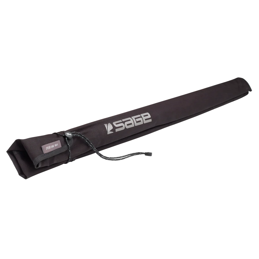 Black rod bag with new quick-tie cord lock for faster, easier, and cleaner storage - Aluminum rod tube with Sage medallion 3wt - 6wt -