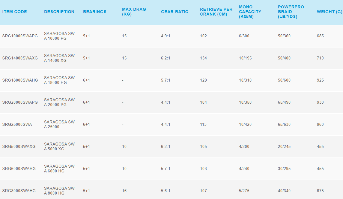 The Shimano Saragosa SW A is a series of offshore saltwater spinning reels. Building off the legacy of previous Shimano Saragosa generations, the Saragosa SW A has been entirely redesigned for 2020. This new generation boasts Shimano's Infinity Drive Technology to increase the reel's winding torque under load, which in turn makes it more effective at taming hard-fighting big game predators. When combined with the reel's incredibly rigid Hagane body and Hagane gear construction, you get an exceptionally smooth, powerful, and reliable offshore saltwater spinning reel.