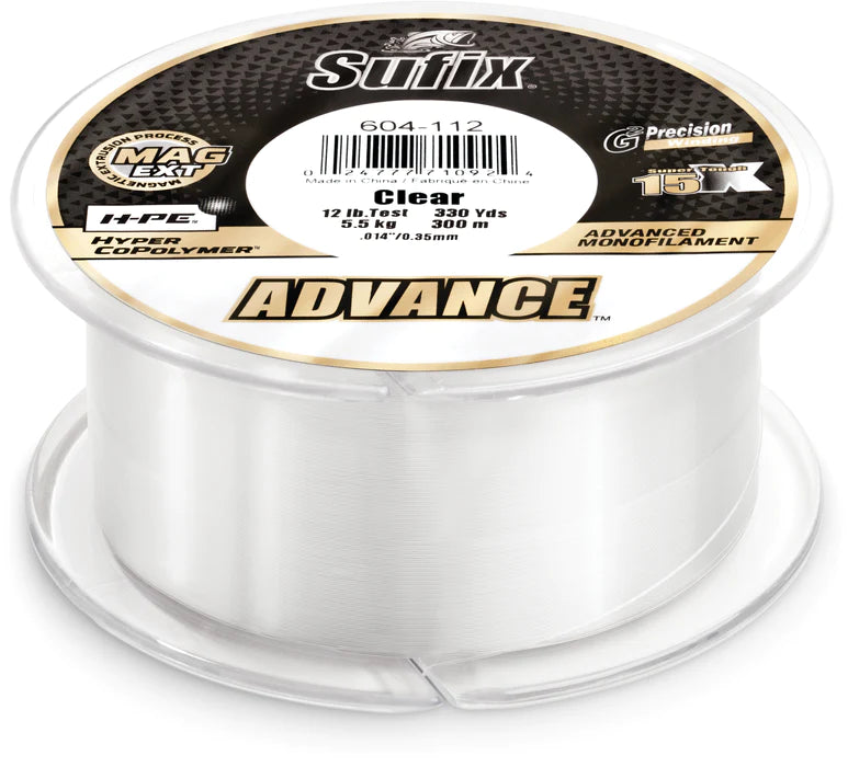 - The Sufix Advance Clear Monofilament 250-330 Yard Spool is a stealthy, transparent monofilament line.
